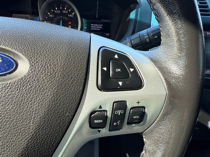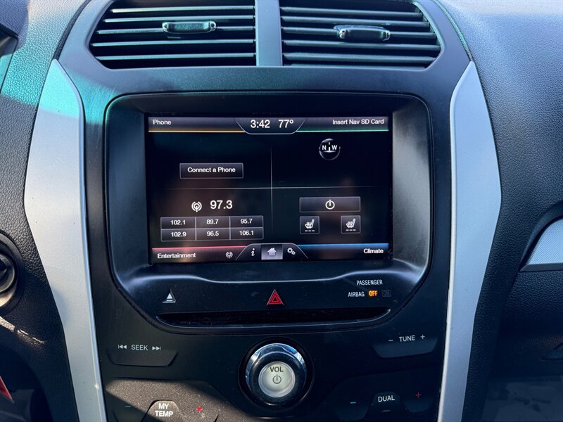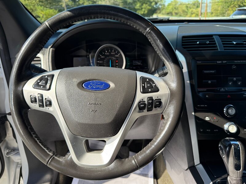 The factory default features of this Ford Explorer XLT include a spacious and comfortable interior with three rows of seating, providing ample room for passengers and cargo. The vehicle comes with standard amenities such as power-adjustable front seats, a leather-wrapped steering wheel, dual-zone automatic climate control, and a 6-speaker sound system with Bluetooth connectivity.