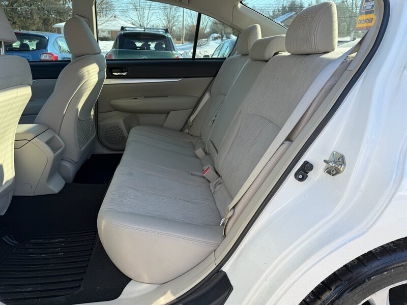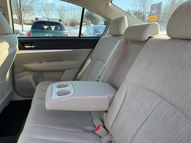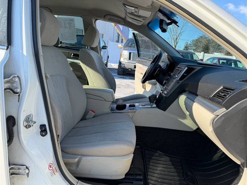 This 2014 Subaru Legacy 2.5i Premium is powered by a 2.5L horizontally opposed four-cylinder engine producing 173 horsepower and 174 lb-ft of torque. The engine is paired to Subaru’s transmission options (a 5-speed manual was available or the Lineartronic CVT), and the model features Subaru’s Symmetrical All-Wheel Drive for confident grip in varied conditions. EPA-rated fuel economy is approximately 24 MPG city and 32 MPG highway.