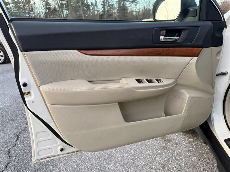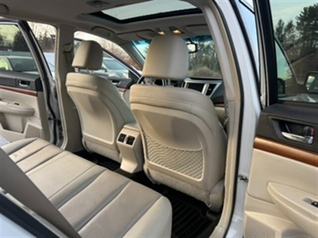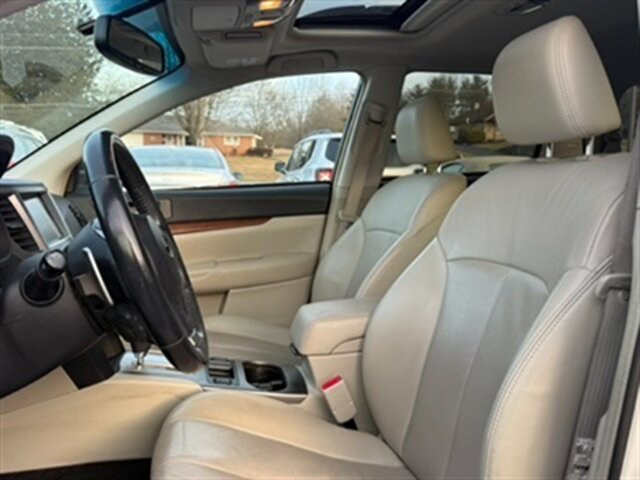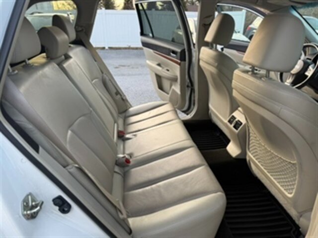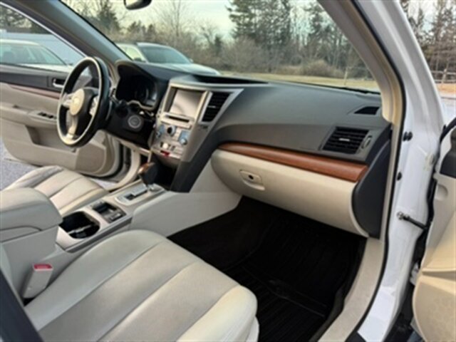 2014 Subaru Outback 2.5i Limited — Satin White Pearl exterior with Off Black leather-trimmed interior. Powered by the 2.5L horizontally opposed (H4) engine producing 173 hp and 174 lb-ft of torque, paired with Subaru’s Lineartronic continuously variable transmission and Symmetrical All-Wheel Drive. EPA fuel economy is an estimated 24 MPG city / 30 MPG highway. Mileage is below 127,000 miles (averaging under 10,000 miles per year). The vehicle is in excellent overall condition and has a clean CARFAX.