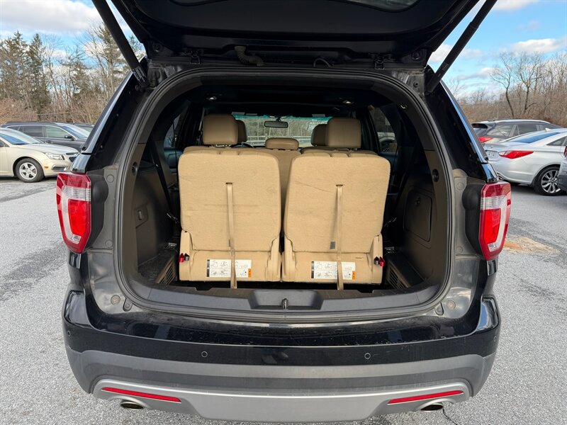 2016 Ford Explorer XLT — Shadow Black exterior with a Medium Light Camel interior. Powered by the factory 3.5L V6 producing 290 hp and 255 ft-lbs of torque, paired with a six-speed automatic transmission. This Explorer has excellent overall condition, a clean CARFAX report, and below 71,000 miles (an average of less than 7,000 miles per year). EPA fuel economy is 16 MPG city and 23 MPG highway.