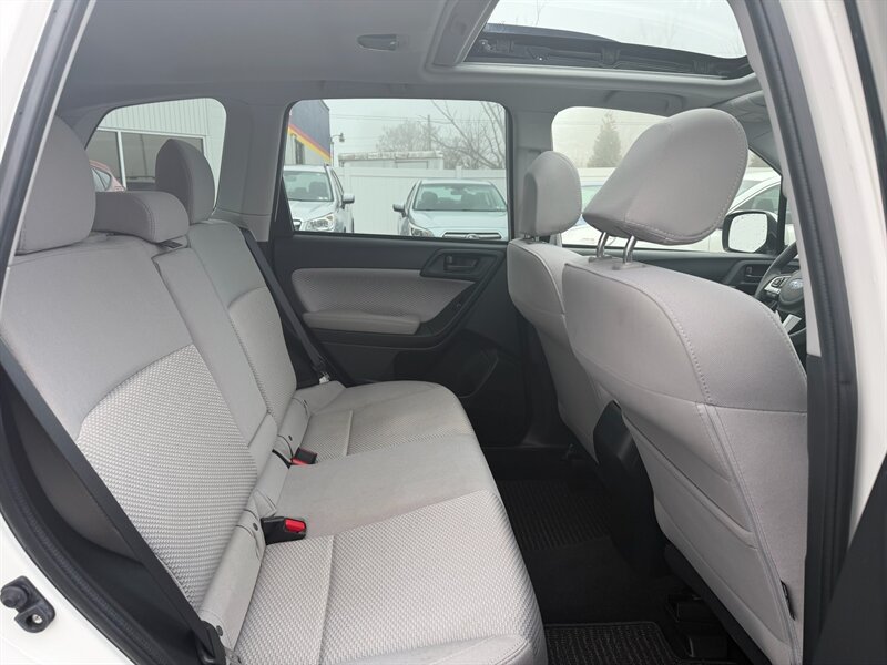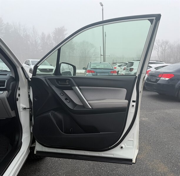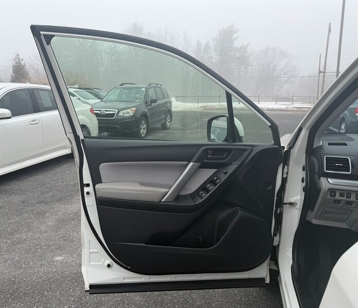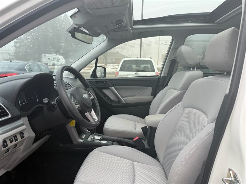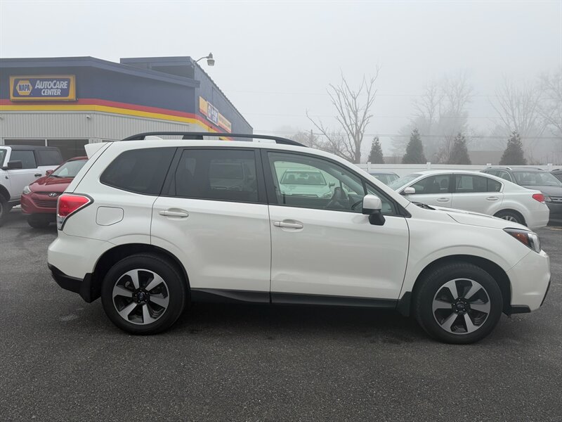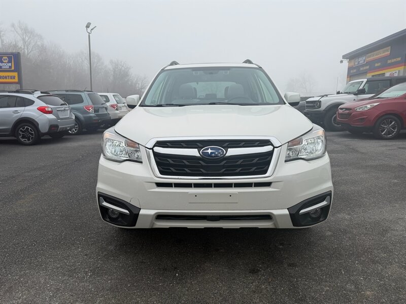 2018 Subaru Forester 2.5i Premium — Crystal White Pearl exterior with Gray cloth interior. Powered by a 2.5L H4 boxer engine producing 170 hp and 174 ft-lbs of torque, this Forester is paired with Subaru’s Lineartronic continuously variable transmission and Symmetrical All-Wheel Drive for secure, predictable traction in a wide range of driving conditions.